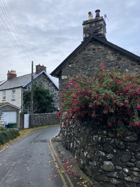 Slowly we descend the track which then morphs into a narrow tarmac road to take us down into Llwyngwrill and the churchyard where we set off for Aberdovey 2 days ago.