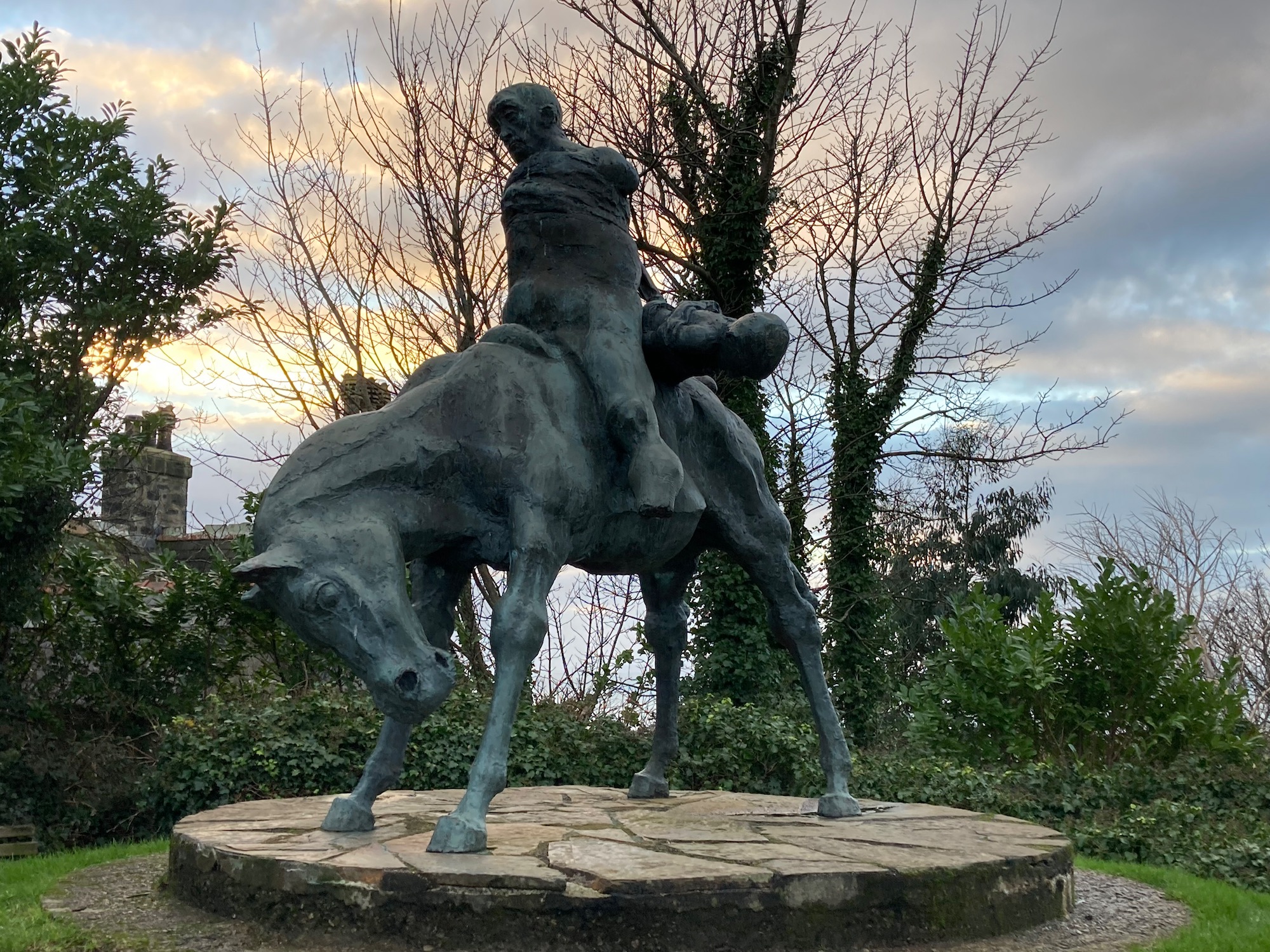 Before heading for our BnB I am struck by a ghastly statue outside the castle walls of a weary, battle worn man on a horse. The man seems to have no arms and his legs are missing from the knee down. Slung behind him with his feet sticking out, is what looks like a dead child.