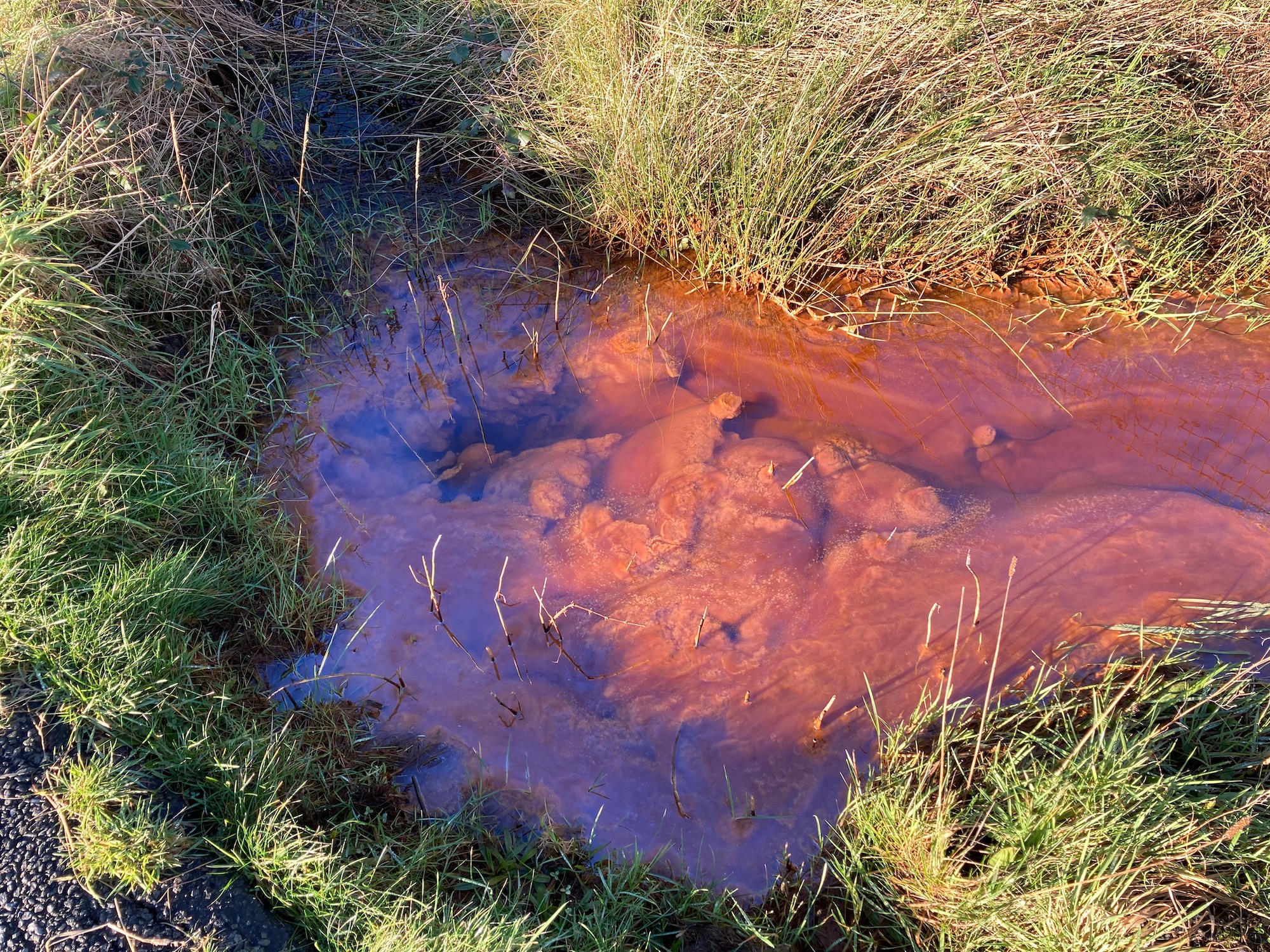 At one point we climb over a stile (getting more and more difficult as the years go by) and I am pulled up by the sight of the stream below. Who knows what has caused this but I don’t think it’s anything good.