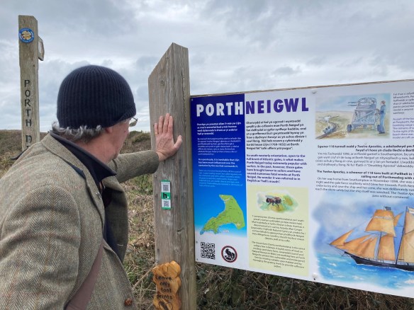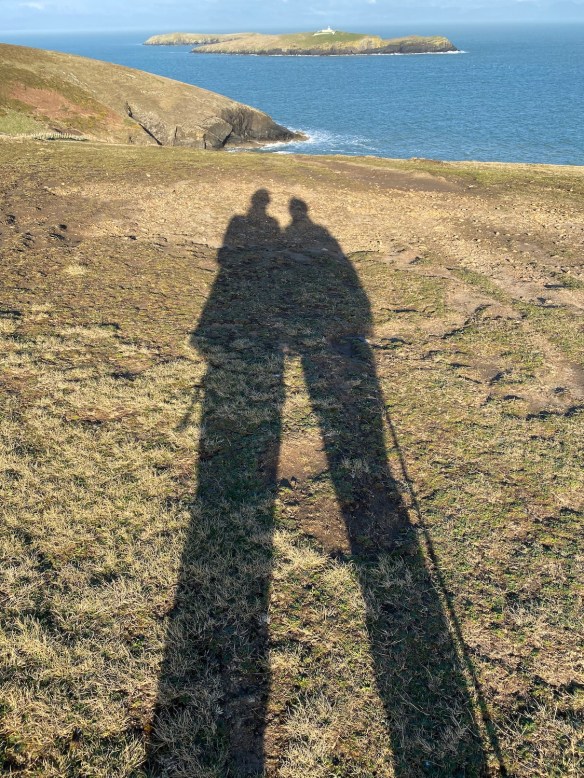Lovely long walk ,scenary and weather ! St Tudwal had the right idea settling on that island! I wonder if some of the ships were wrecked deliberately at Hell’s mouth bay like in Cornwall. Great memorial bench to Teddy Maher R.I.P! Loved the shadow picture of you both. Yes I bet that beer tasted great.xx