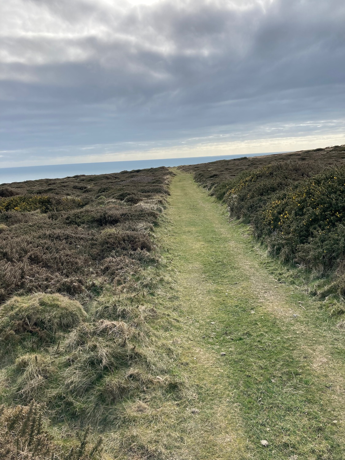 Anyway, onwards ever onwards, it is encouraging that we are now following a wide grassy path through the heath and heather and we make good progress.