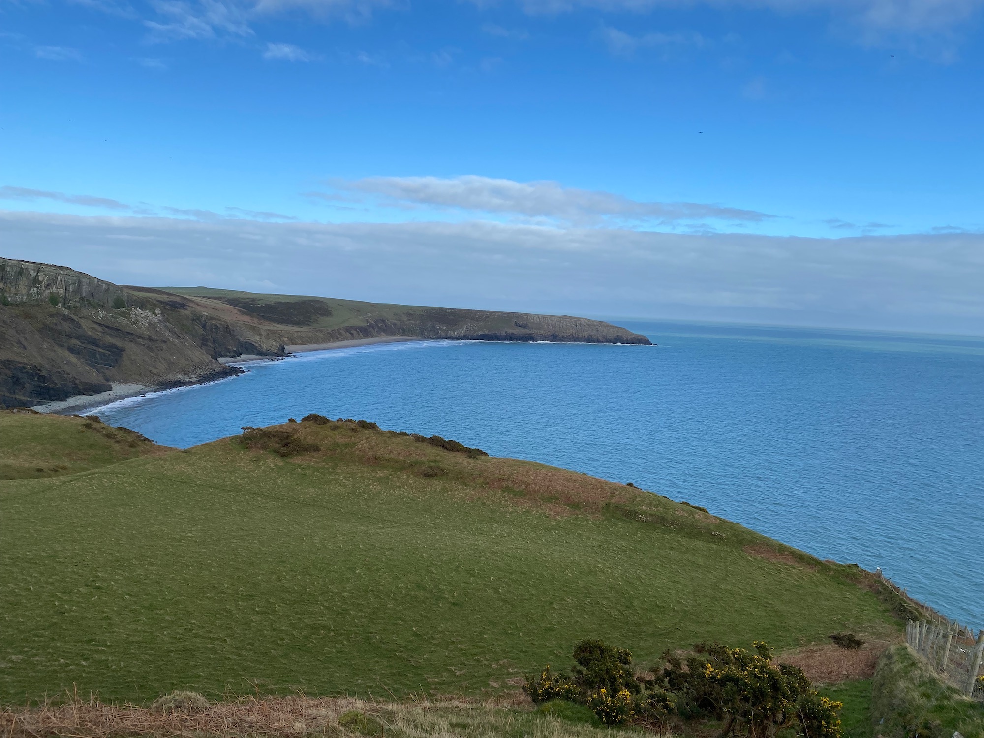 Having been quoted £40 for a 15 minute taxi drive (in areas like this they have to come from miles away), our wonderful host steps in and offers to drive us. She lets us out in the carpark of Plas yn Rhiw and we start walking back up the road for a couple of miles before turning off to follow the Welsh Coast Path signs back to the coast.