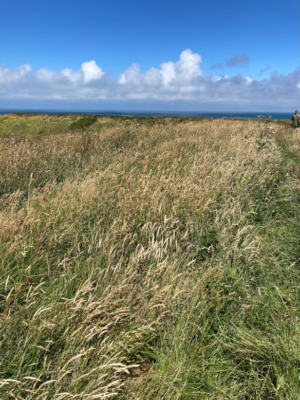 Further on the path is so overgrown that it is difficult to see it, which makes me think that this part of the coast path has not been used for a while. It reminds me of the “paths” around the salt marshes and estuaries of Essex which I walked some years ago.