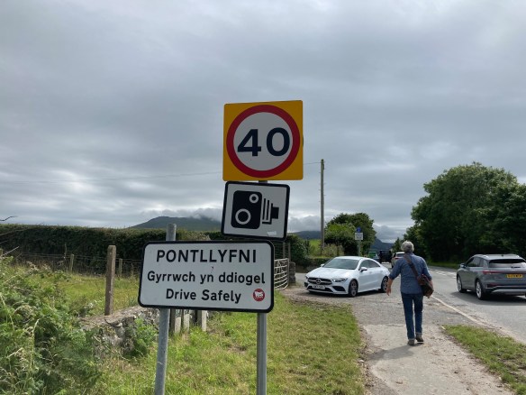 From here there has been some attempt to shield pedestrians in the form of treelined pathways beside the road but they are intermittent and by the time we get to Pontllyfni we are hot and bothered with sore feet – walking on tarmac for a long time is painful.