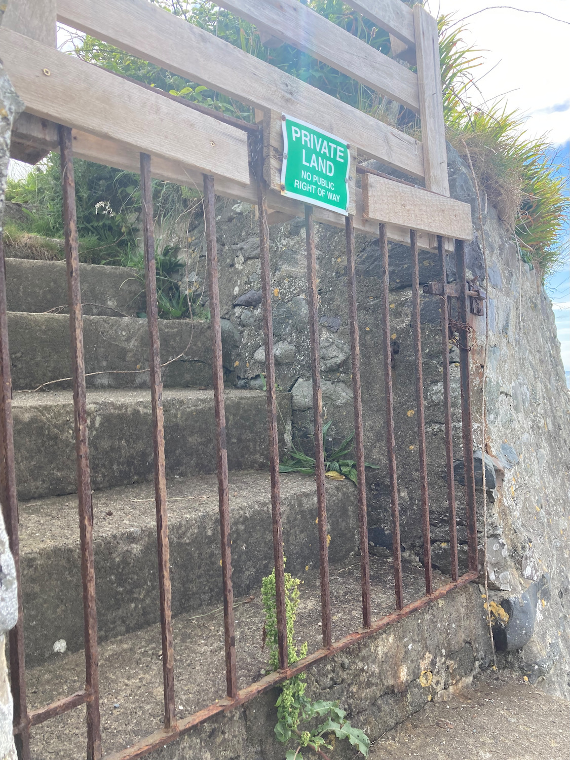 On reaching Aberdesach we make another attempt to reach the coast and end up in a caravan site near a stoney beach with no sign of a path. I suddenly realise that the path is up on the cliffs and access to it has been closed, probably by the caravan site owners grrrrrrrrrr………