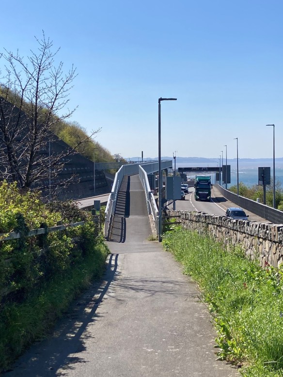 From here on it’s a heads down half a mile trudge alongside the busy road until we reach yet another metal footbridge across the railway line and down to the beach – hurray!