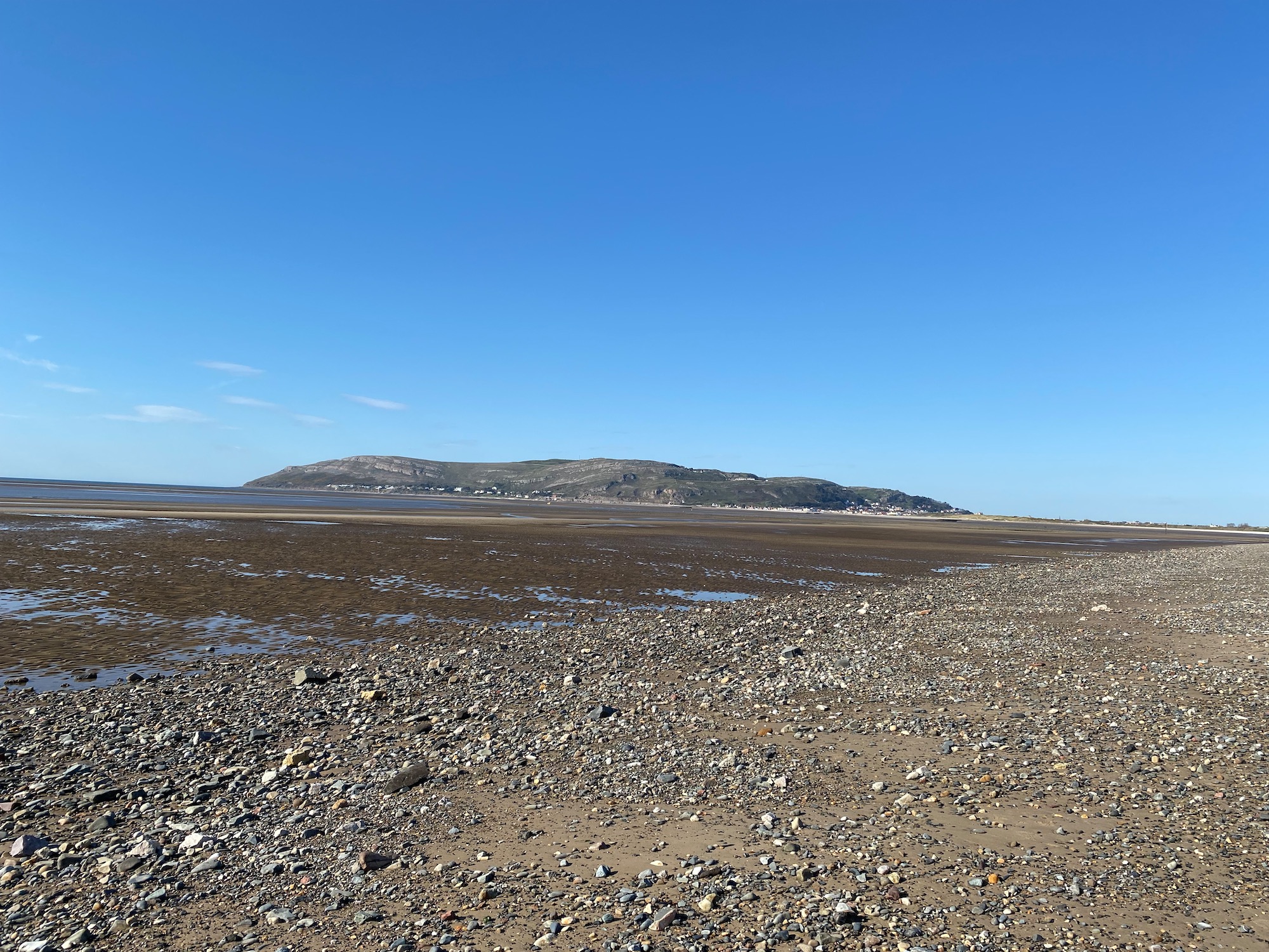 The path now skirts an area of reclaimed marshland called Conwy Morfa which is now being used as a golf course. Up ahead in the distance is the bulk of Great Orme’s Head which we will be walking around tomorrow.