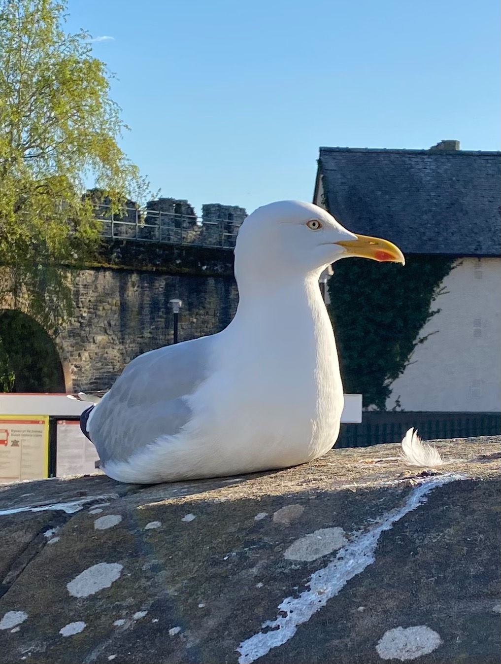 We find a pub for a very welcome pint and sit outside watching the comings and goings of the harbour. A very fat seagull keeps a watchful eye on our crisps.