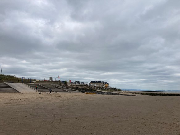 What a difference a day makes….Prestatyn Beach or Barkby Beach as it’s marked on the map, is deserted this morning, apart from a couple of dog walkers. It’s a grey day.