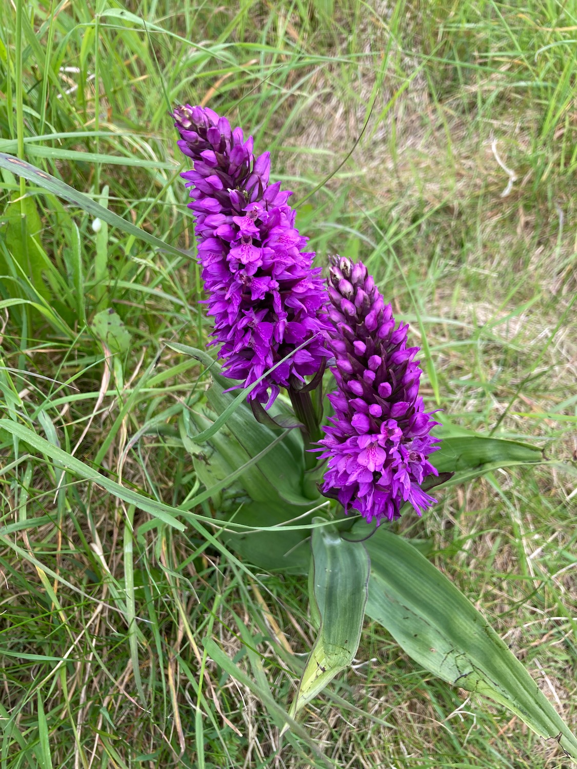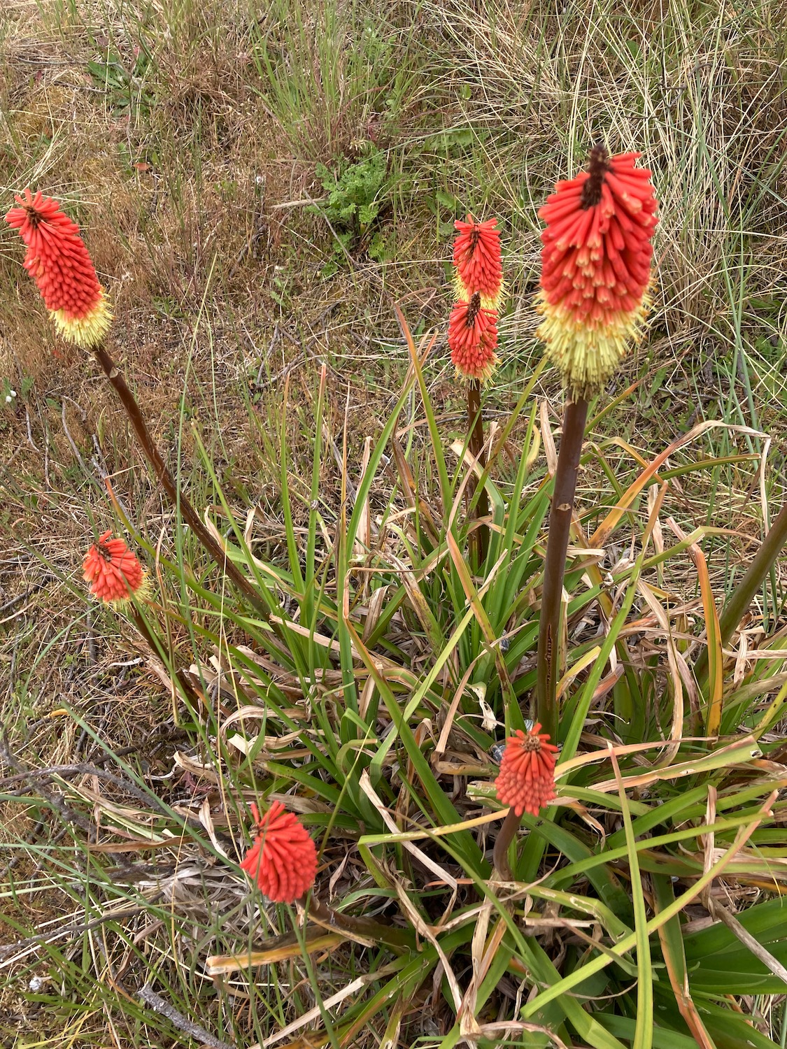 Solitary flowers provide colour ….this one an orchid and the other I only know by the rather prosaic name of red hot poker.