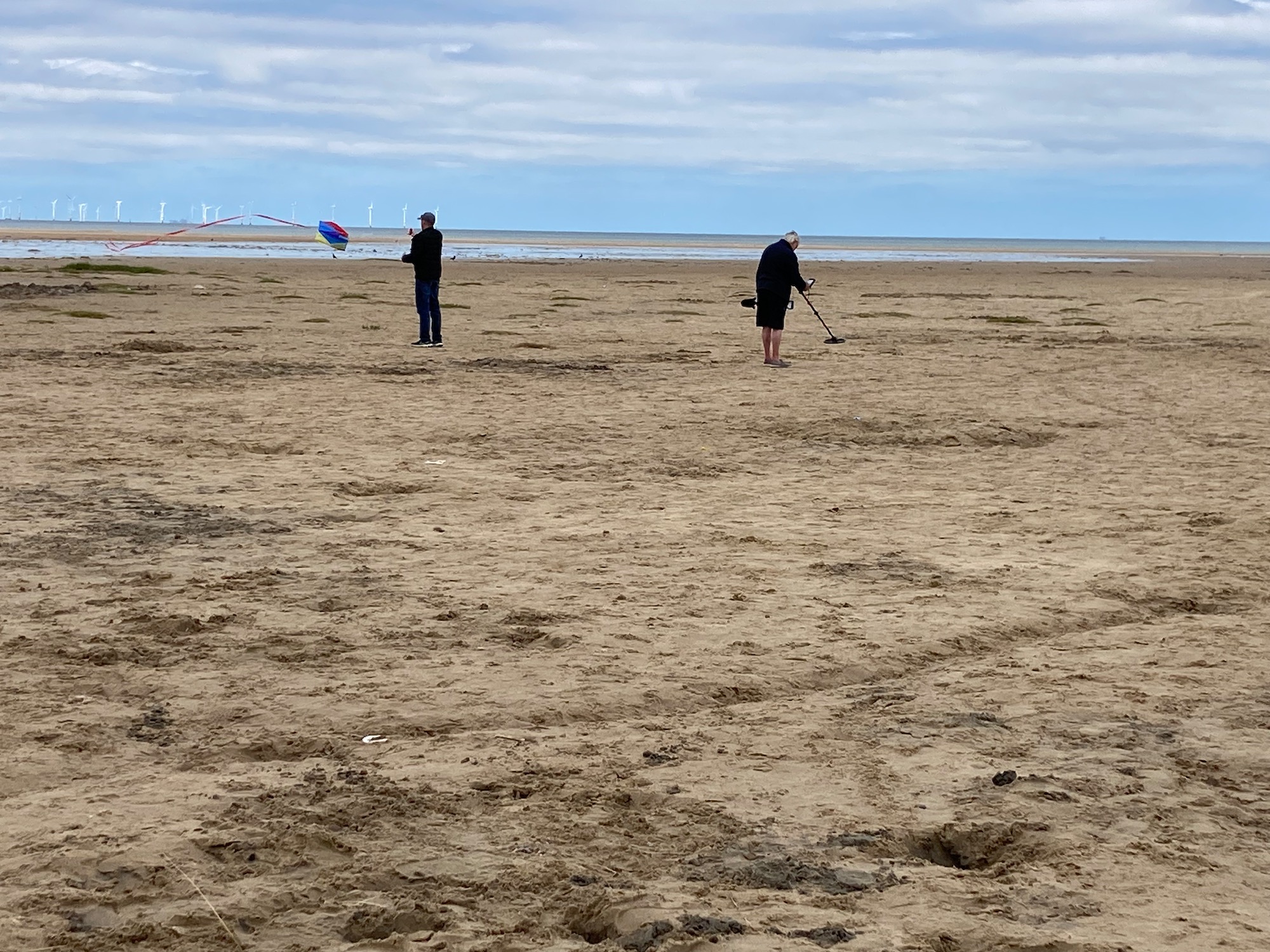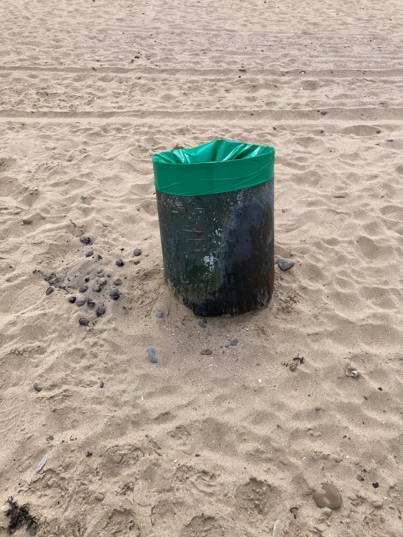 Back on the very windy beach we pass two detectorists (how I loved that series) and a dustbin – I don’t think they’re connected but I find myself wondering who would come and empty one dustbin on two miles of empty beach?