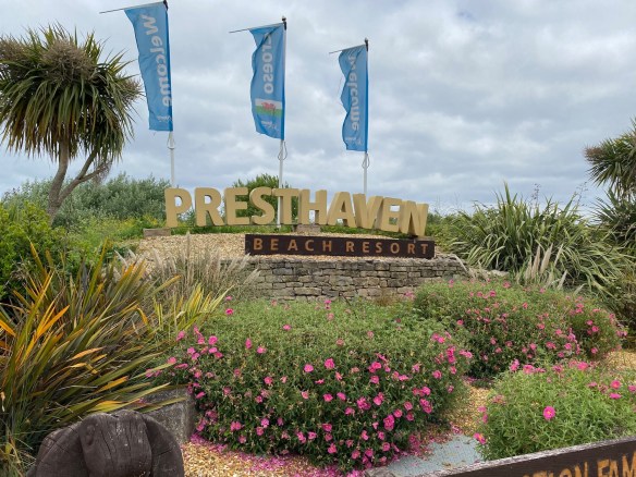 A little later we walk into an area called The Warren – a campsite appears with a very well tended entrance. I later learn that this area was a popular holiday destination after the Second World War when families were evacuated from Liverpool to temporary wooden homes and caravans. We wonder whether Damian’s mother, who was indeed evacuated from Liverpool to Wales ever came here – one of the many questions we never get round to asking before it’s too late.