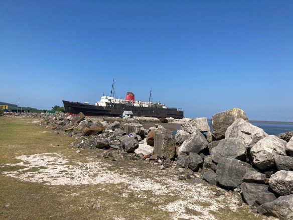Turning right I follow a wide stoney track running behind the usual large boulders used as coastal defences – these are apparently called rock armour or riprap rocks.