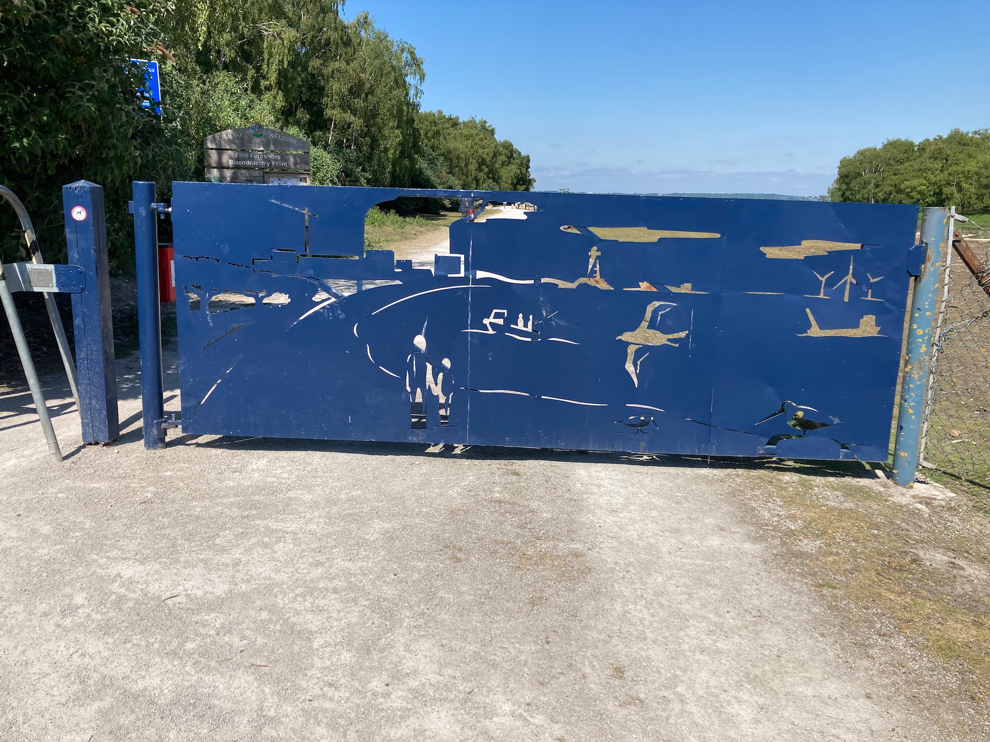 Just behind the stones a heavy metal gate crosses the path with pedestrian access to the left – they really like metalwork in this area.
