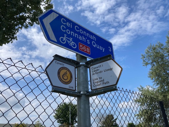 Over the other side are the signposts to guide us onto the cycle path and the link with the English Coast Path.