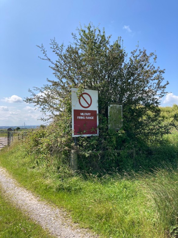 Emerging unscathed from the intricacies of crossing the A548 we find ourselves walking through a wide stretch of marshland some of which is being used as a rifle range. There are no red flags flying, or any other way of knowing when we should duck so we carry on regardless.