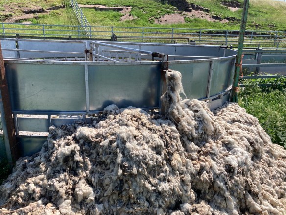 At some point we walk past a sheep shearing station – I’m not quite sure if this is discarded fleece or intended for further processing but it looks pretty mucky. In my hippy days gone by, living in a “commune” in Norfolk, I actually owned a spinning wheel, carding and spinning the wool and even dying it with natural plant dyes to knit lumpy sweaters and hats for various boyfriends. This was women’s work – the boys rode classic motorbikes hmm………………..