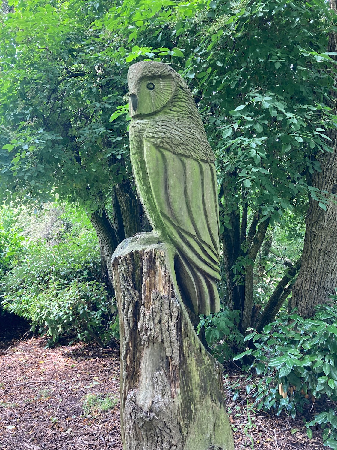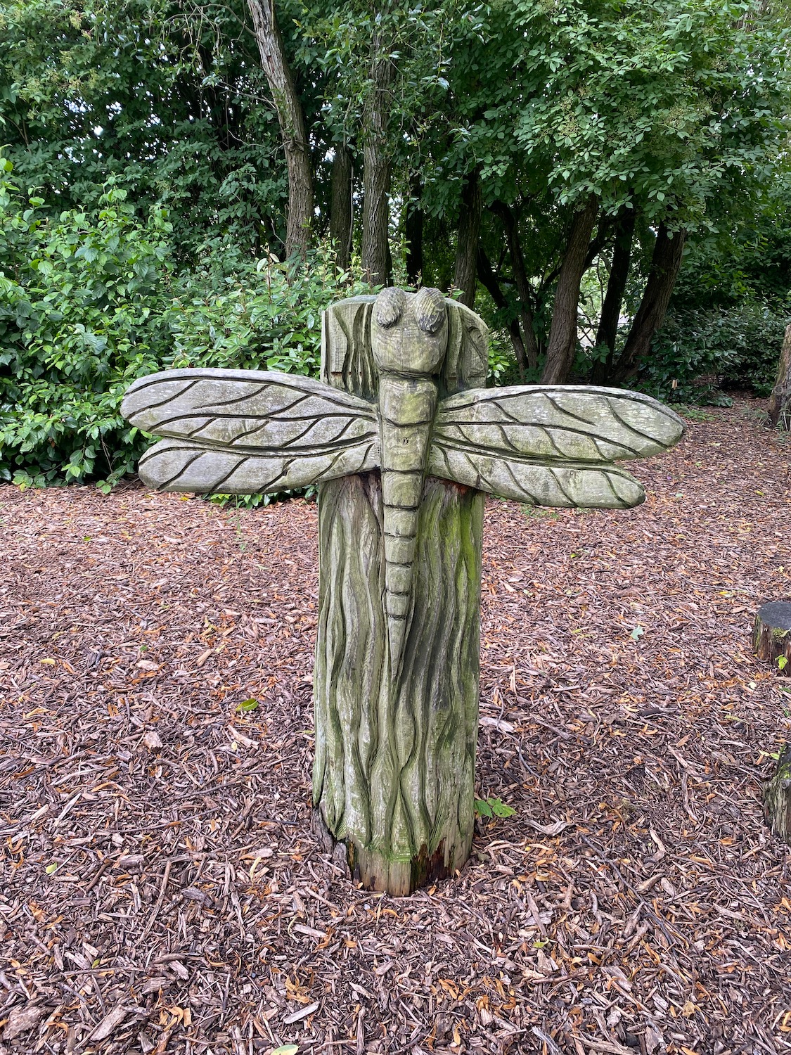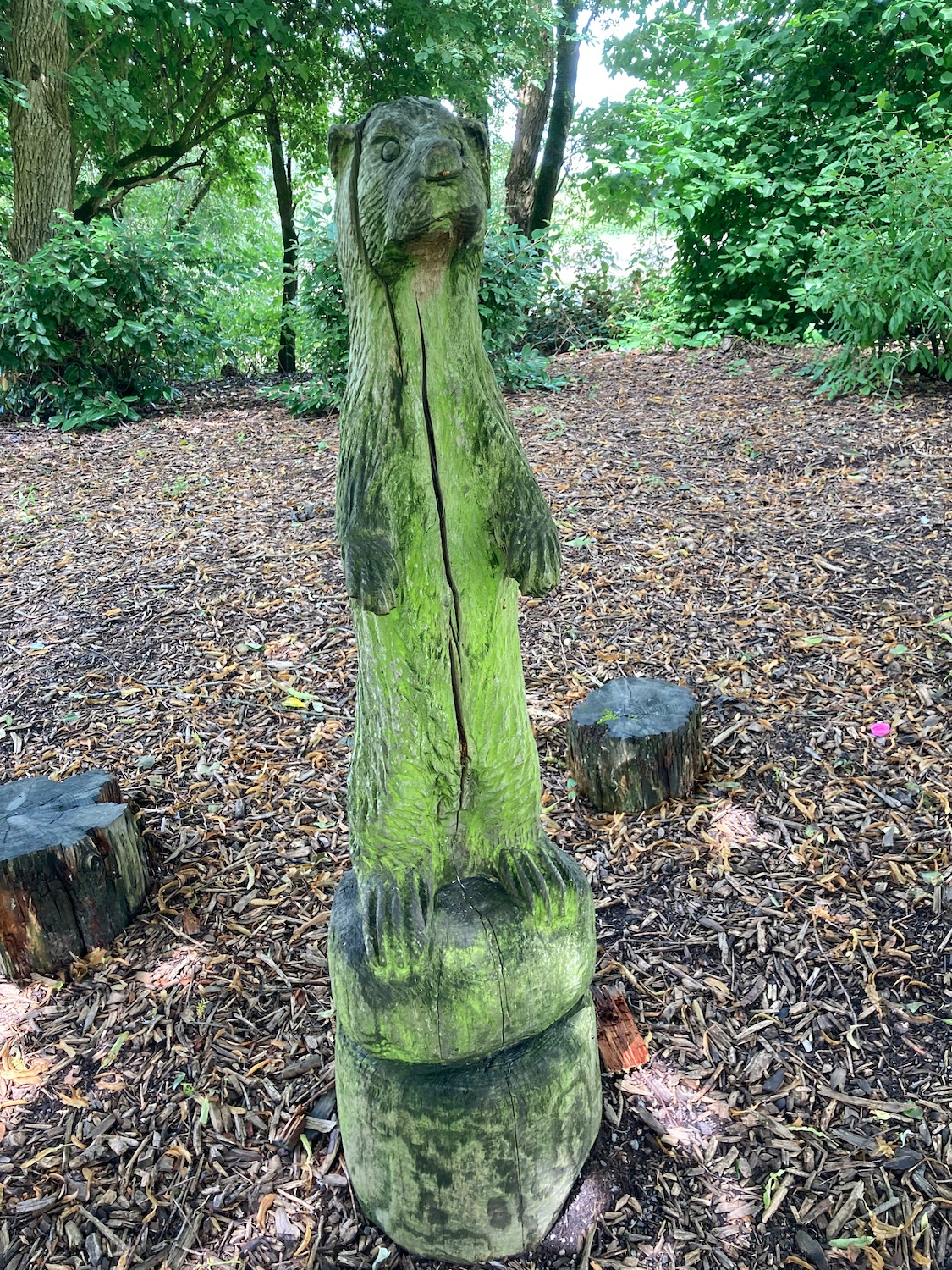 Carved wooden sculptures follow our progress……………..