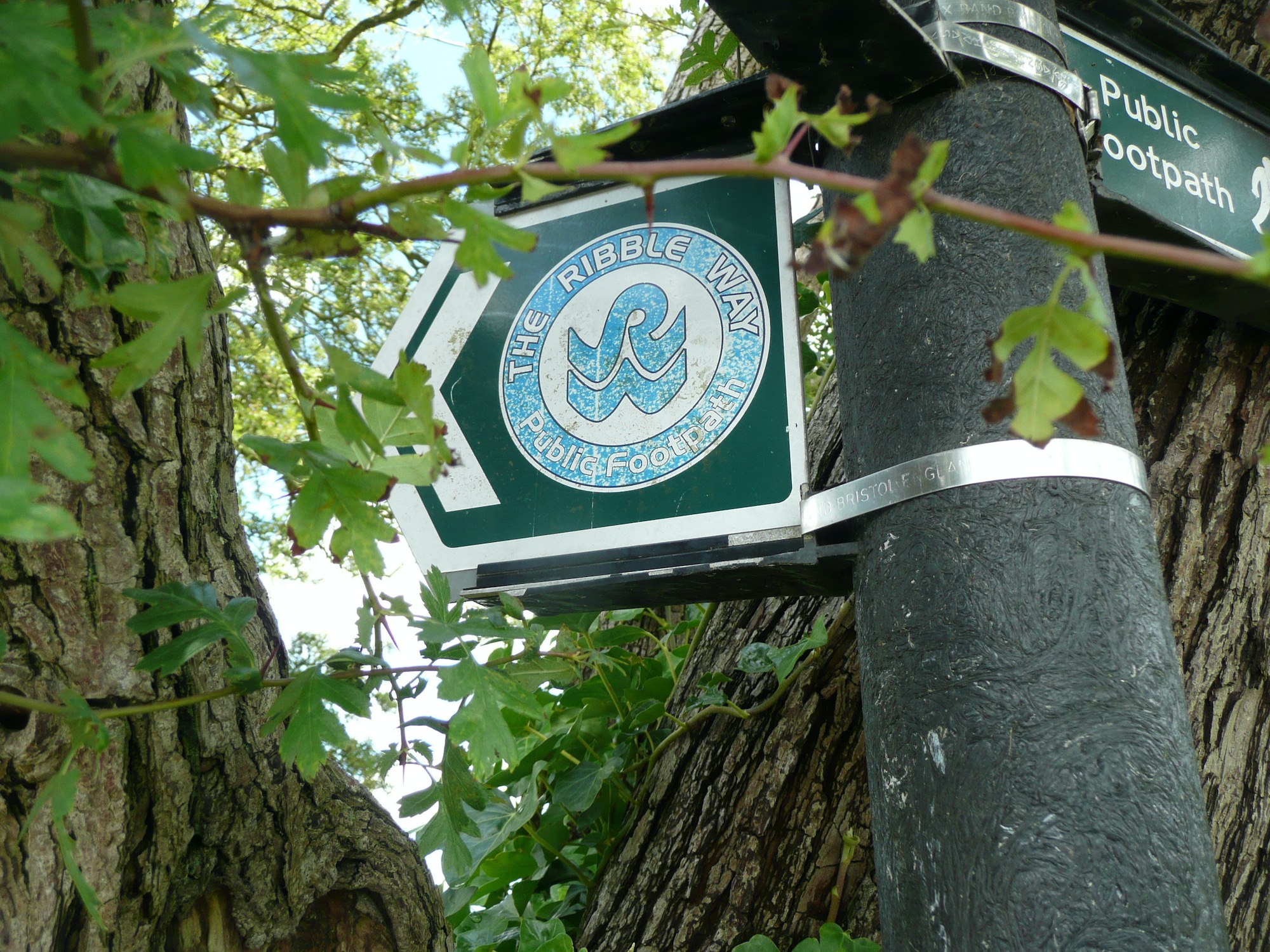 Returning to the Dolphin Inn we leave the car and follow signs for the Ribble Way which starts here and follows the River Ribble through Preston and right up to its source in the Yorkshire Dales.
