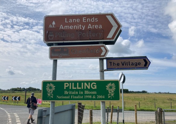 Four miles later we are directed off the main road onto a minor road leading to the village of Pilling – hoping for a cup of tea. Not to be – despite the fact that this is obviously a celebrated village, there is no cafe to be found anywhere and the local community centre, which we’re told may harbour tea and cake, is closed.