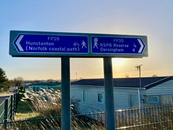 After a very quiet New Year’s Eve in Kings Lyn, we take advantage of fair weather and rise early on New Year’s Day. The very expensive taxi (no buses) drops us off at a spot called Shepherd’s Port – the last time we were here was in 2015 when we walked north to Heacham.