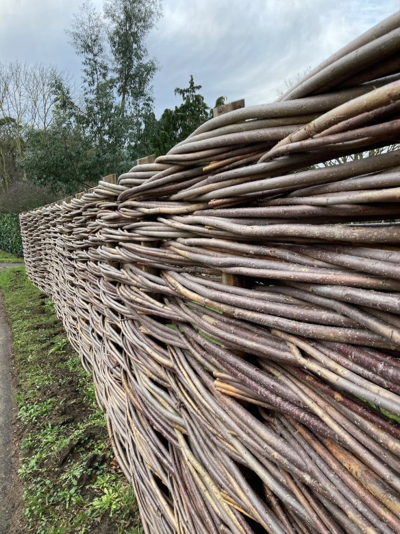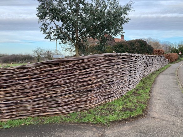 By this time we are very tired and when you’re tired the head tends to go down and you probably miss things but about half a mile along the road we walk past this beautiful willow fence which literally stops me in my tracks.