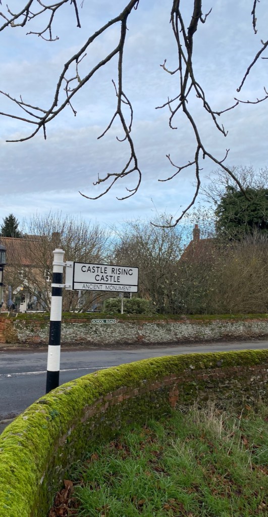 It is with relief that we turn off right onto a footpath that leads to a village called Castle Rising. The castle itself is one of the most famous 12th century castles in England and is a popular tourist destination. Parked cars line the lane leading up to the centre of what looks like a pretty affluent village. We pass a lovely low lying brick building which I later discover is known by two names – Trinity Hospital or Bede House. The building was built in the early 17th century by the Earl of Nottingham or Northampton (the web can be a little unreliable at times) – and was intended to house 12 poor women from the local parish. Consisting mostly of unmarried women and widows, those selected were required to be ‘of an honest life and conversation, religious, grave and discrete, able to read…………………..a single woman, 56 years of age at least, no common beggar, harlot, drunkard, or haunter of taverns’.