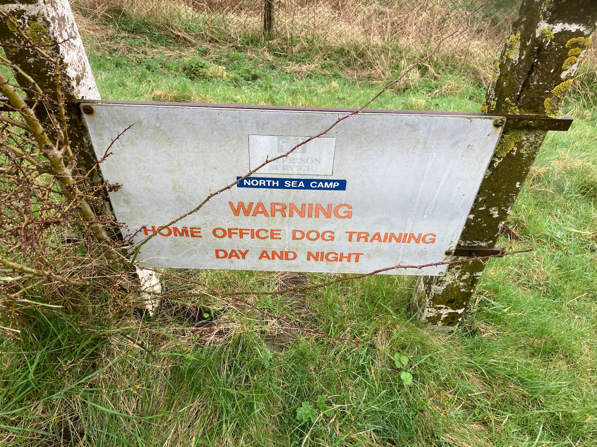 It is still raining heavily as we cross soggy fields heading towards the river and an area called The Haven. After the adrenaline of the prison break I am feeling a tiny bit miserable and this warning sign does not help