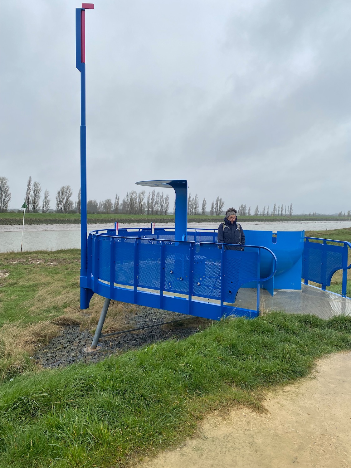 A little further up the river bank we come across a bright blue sculpture/viewing point which has been built to commemorate the Pilgrim Fathers. The history of the various groups leaving England to escape religious persecution, is long and complicated but in short it was roughly from here in 1607 that the first attempt was made to escape the country. They failed because the captain of the ship they had charted to smuggle them out of the country betrayed them and they were arrested. A year later they tried again and this time they made it to Holland. Twelve years later they were on the move again and set sail for Plymouth to meet up with other Separatist groups, who were planning a journey to Virginia on the Mayflower. And the rest is history.
