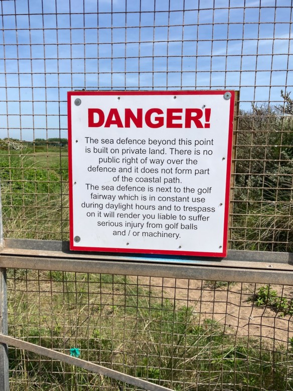 As we walk on through another village called Chapel St Leonard’s the wide sandy beaches slowly disappear and are replaced by scrub – the sea now miles away. And here we have the Lincolnshire flag – apart from Cornwall I don’t think I’ve ever noticed a county flag.