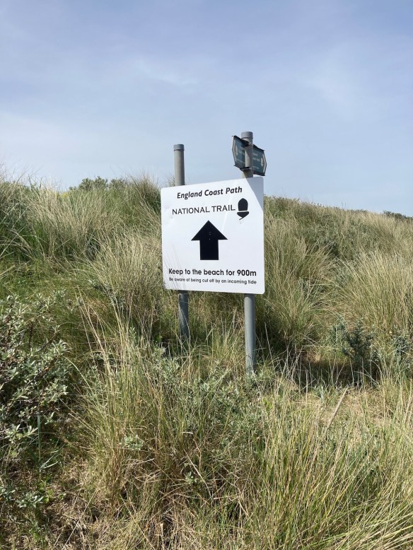 We pass the sign for the England Coast Path, which has now been renamed the King Charles 111 England Coast Path. This does not mean that it is complete – unlike Wales there are still many dots to be joined up.