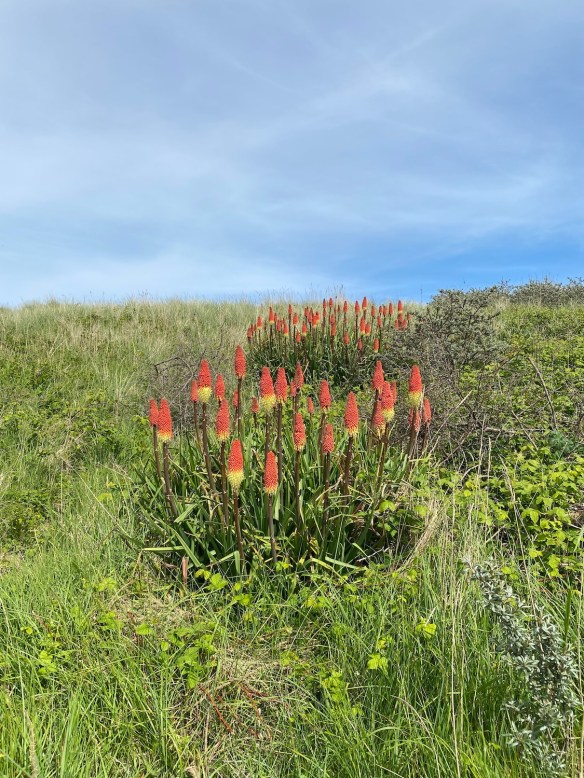 On we go, through the dunes – a patch of red hot pokers is a strange sight, you usually see them in gardens.