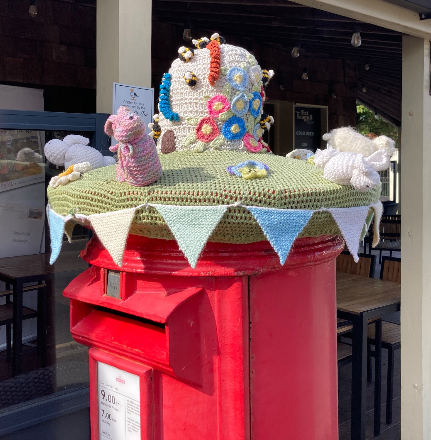 By now we are tired and the last three miles are a bit of a chore. When we arrive at a place called Sandilands we decide to call it a day and get a bus back to Skegness. On the way we pass this finely decorated postbox.