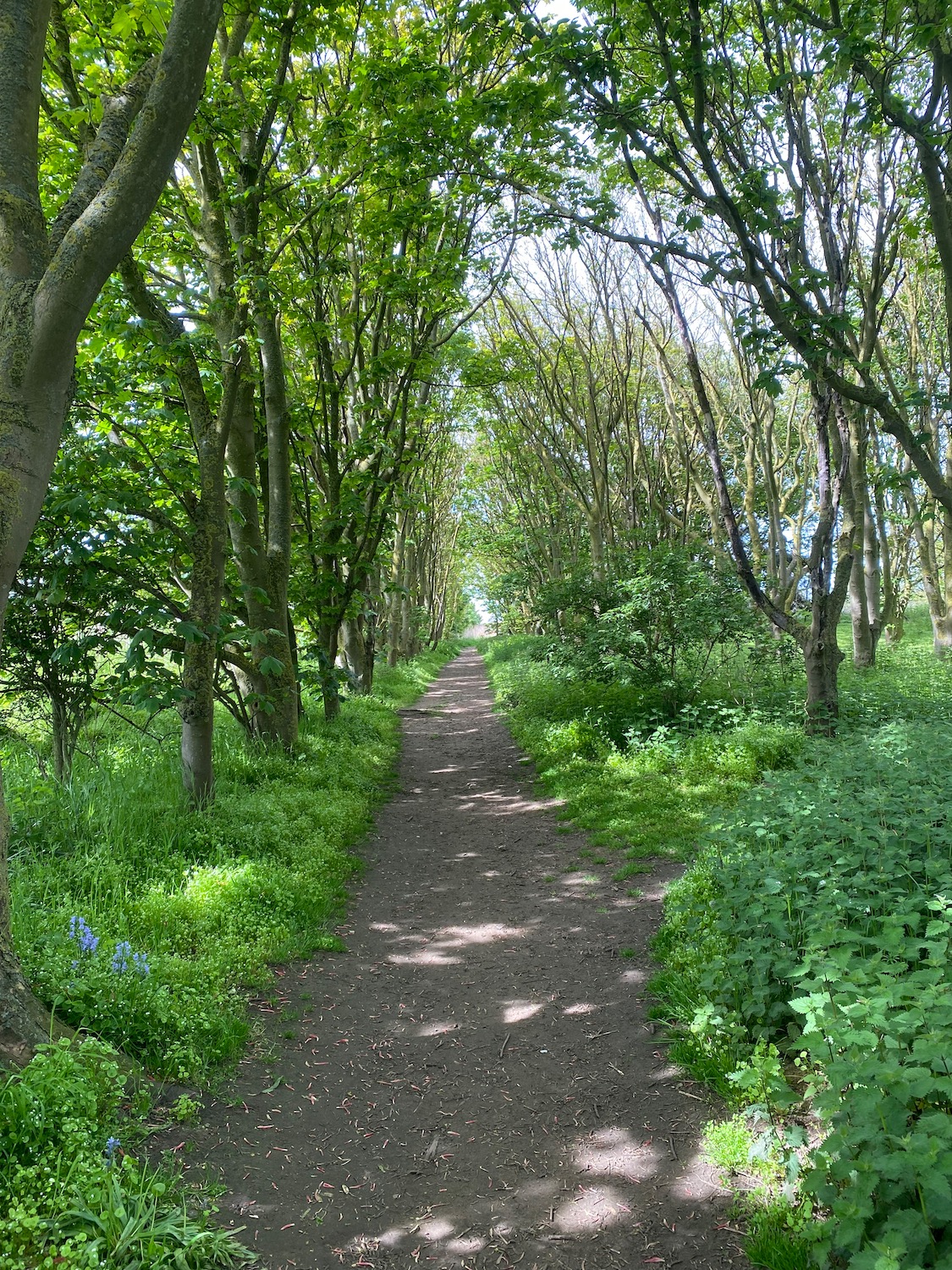 The path now takes us away from the beach, along a narrow sandy path through a small nature reserve, punctuated by a couple of carparks.