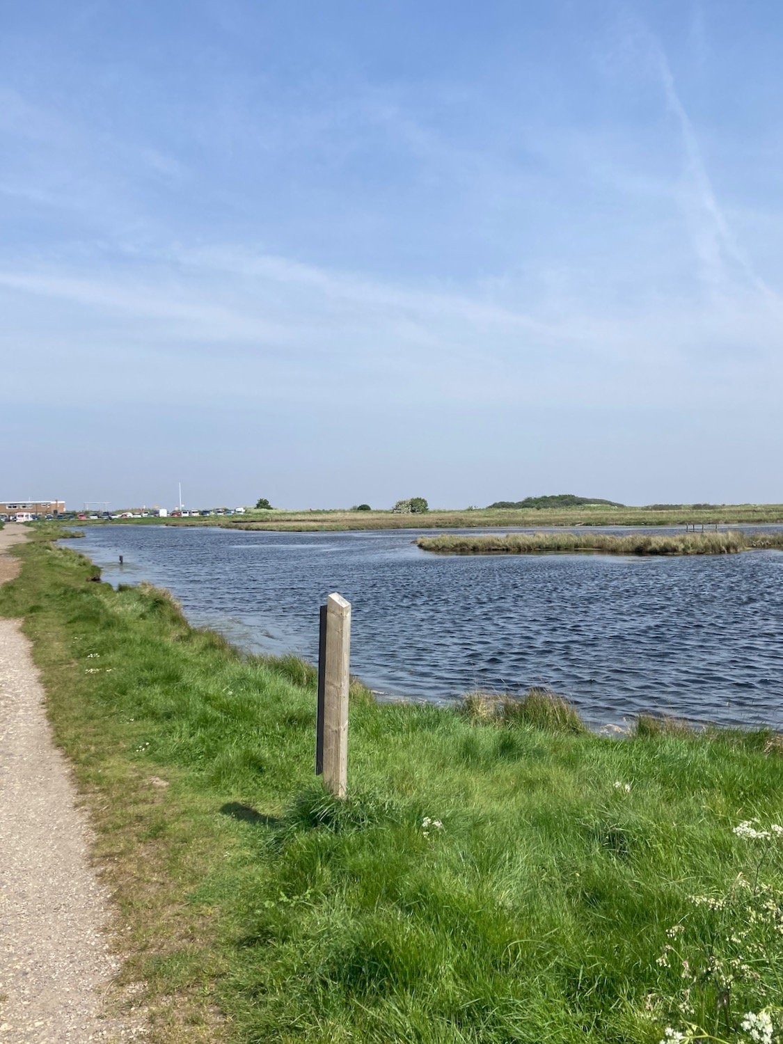 We are now approaching the end of Tetney Marsh Nature Reserve where the path runs past a couple of lakes. In the distance is a carpark and a low brick building – could this be a tea/coffee stop? But alas it turns out to be the Humber Mouth Yacht Club.