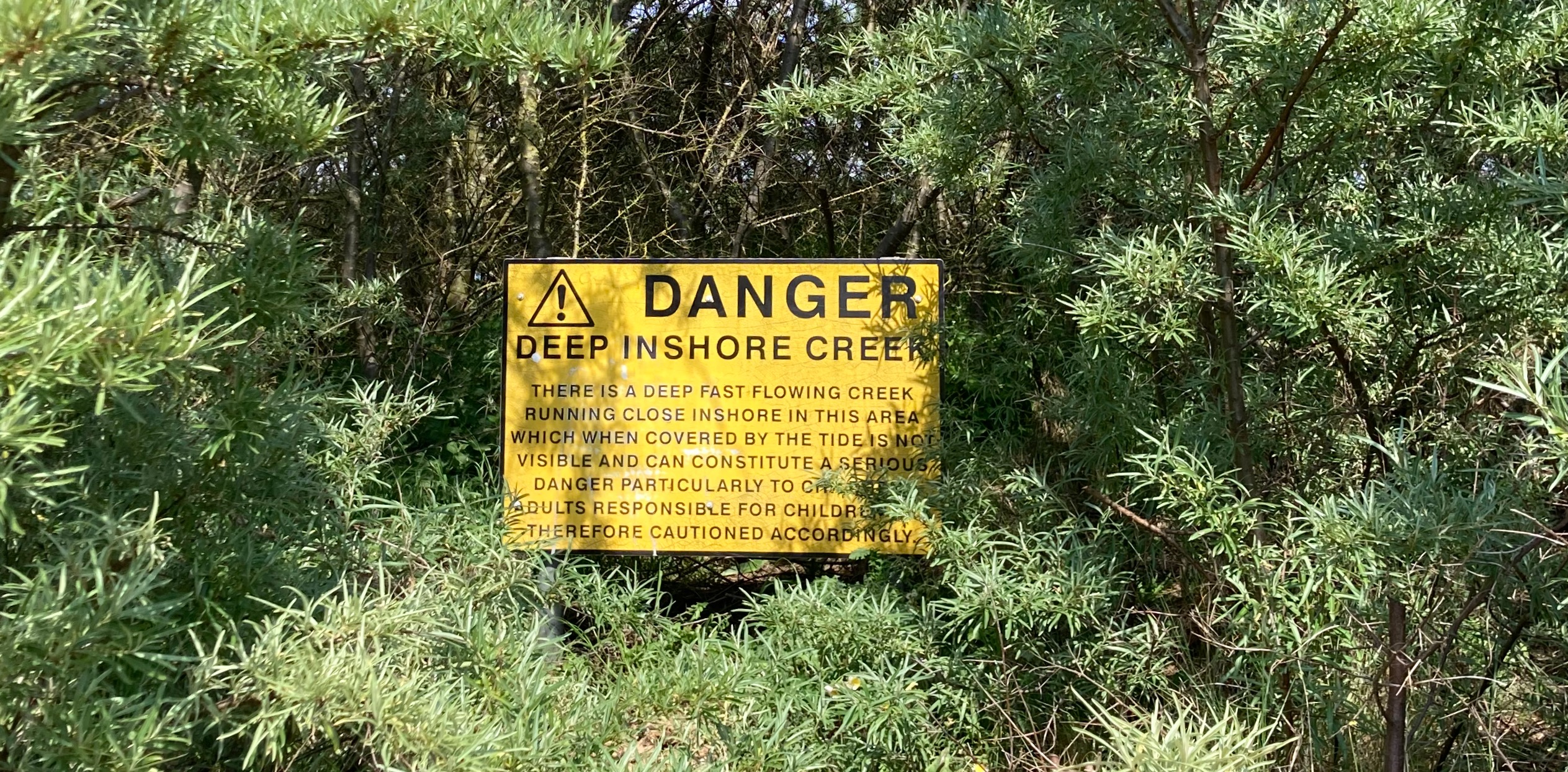 Lining the path are a few warning signs about what is apparently a treacherous stretch of water with a very fast rising tide. This reminds me of the time when I got myself and my younger sister stranded on an uninhabited tidal island close to where the family lived in South Wales. Sully Island sits in the Bristol Channel (Severn Estuary), which has the second fastest rising tide in the world. Access is on foot across a rocky causeway, a walk which is only possible three hours each side of a low tide. I loved that island as a place of escape from daily life, and my enthusiasm for showing it to my sister must have clouded my judgement of the tides as we suddenly found ourselves unable to walk back.
