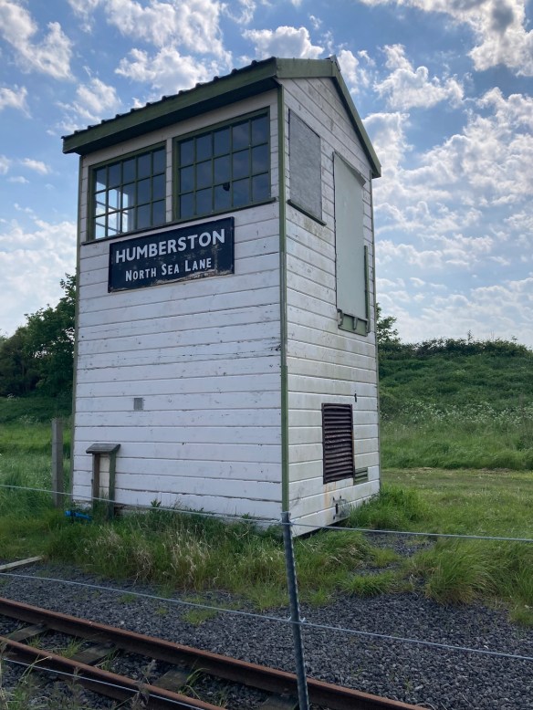 I can see marked on the map the Cleethorpes Coast Light Railway – which has a signal box at Humberston. The railway lines look a little unused but a little later we hear a whistle and a toot and here she is…