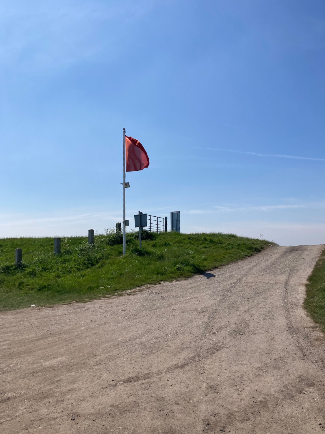 After a mile or so a track leads off to the left and a red flag is flying – we are not going that way so it probably doesn’t apply to us, does it?