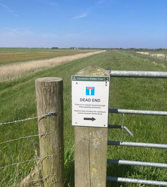 A little later we move into the dunes at Donna Nook where the seals apparently like to come back to every Autumn. The path then moves up on to dry land at a place called Stonebridge, where there is a large car park – presumably to cater for the hundreds of visitors coming to see the seal pups. From here it is a pretty straightforward run along a marked footpath which runs inland, encircling an area of wetlands called Porter’s Sluice.