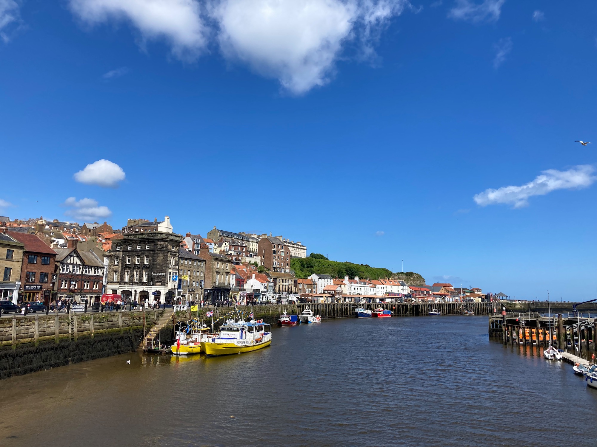 Up on the cliffs leading out of town is a wire sculpture of “Skipper Dora”, who was the first female skipper on the north east coast. Her work as a nurse in the First World War left her with bronchial problems so she moved to Whitby for the sea air. She then took up fishing and had her own boat built – a remarkable woman.