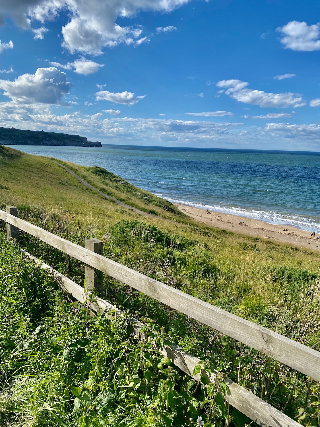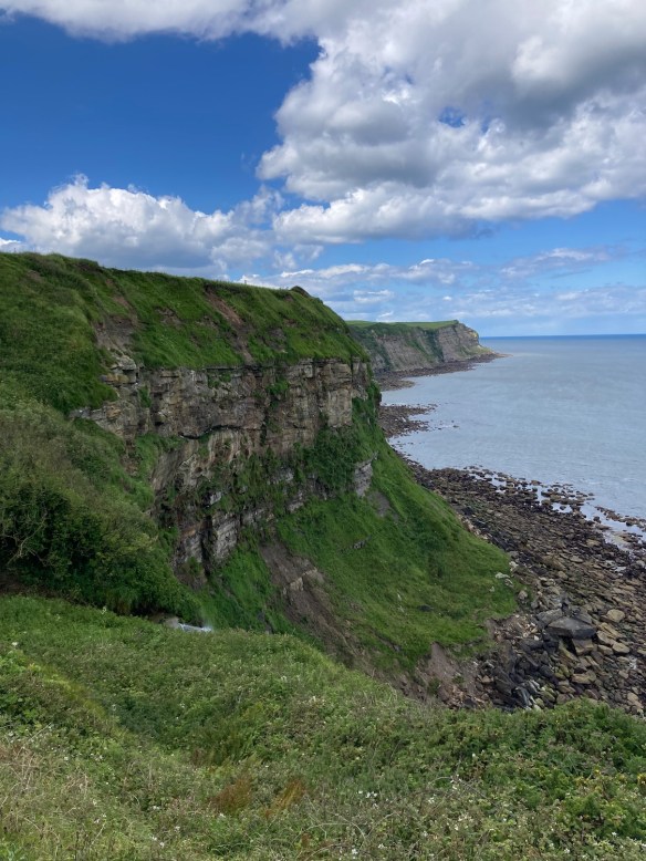 After a short stretch of road walking we are now approaching Sandsend – we could possibly have walked along the beach from Whitby (as Damian suggested) but when I look back I can see there is a headland half way down, which is already submerged.