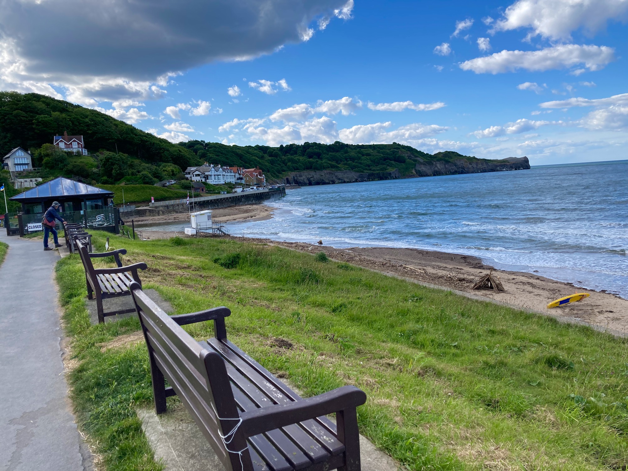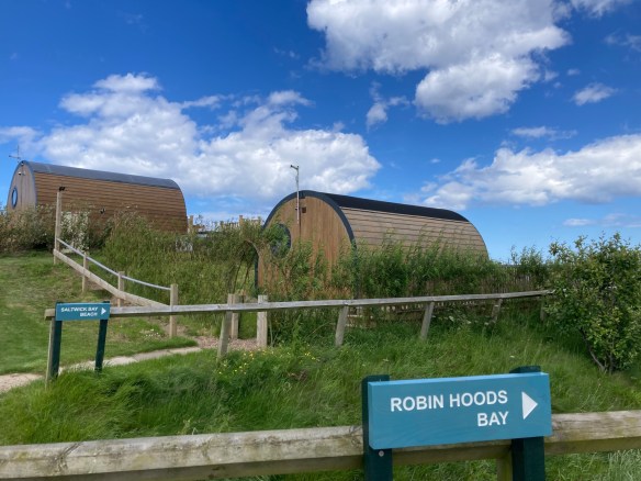 The path continues along the top of the cliffs until we reach Sandwick Bay, a mile outside Whitby. There are steps leading down to the beach which is apparently very popular with fossil hunters – it is also a spot where the famous Whitby Jet can be found. Overlooking the bay is a large holiday park – amongst the caravans and camper vans nestle these lovely wooden pods.