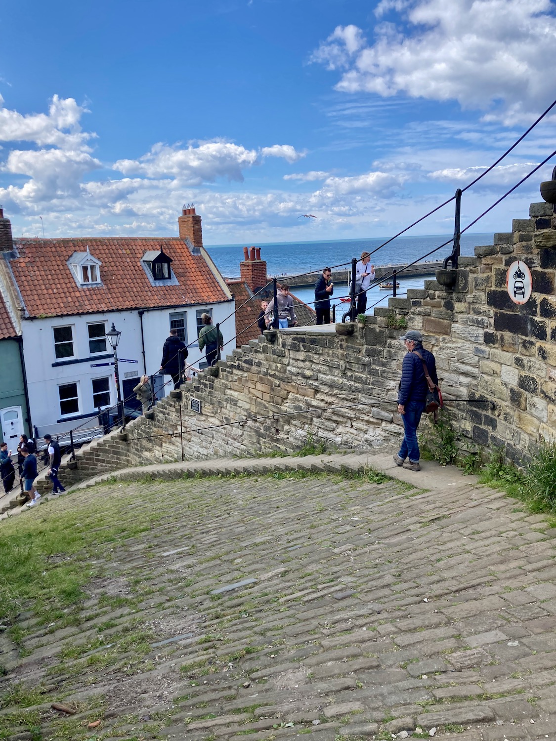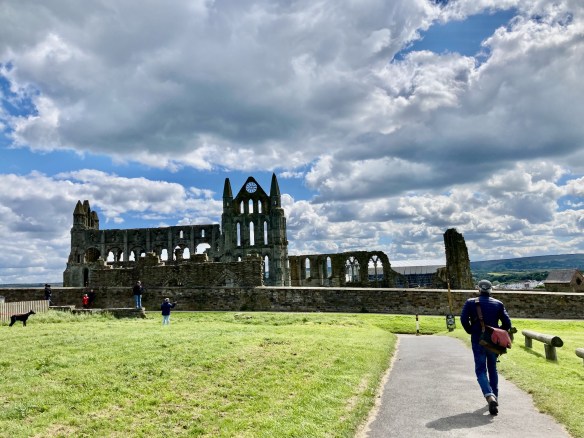 A brand new sign tells us we’re still on the England Coast Path and soon we can see the outline of the ruins of the abbey in Whitby.