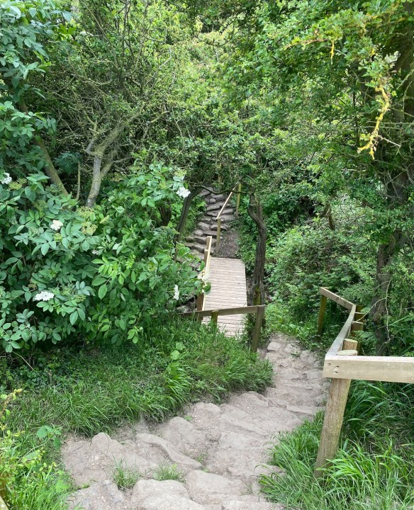 A little later the path leads us through a patch of woodland with a very steep set of steps.