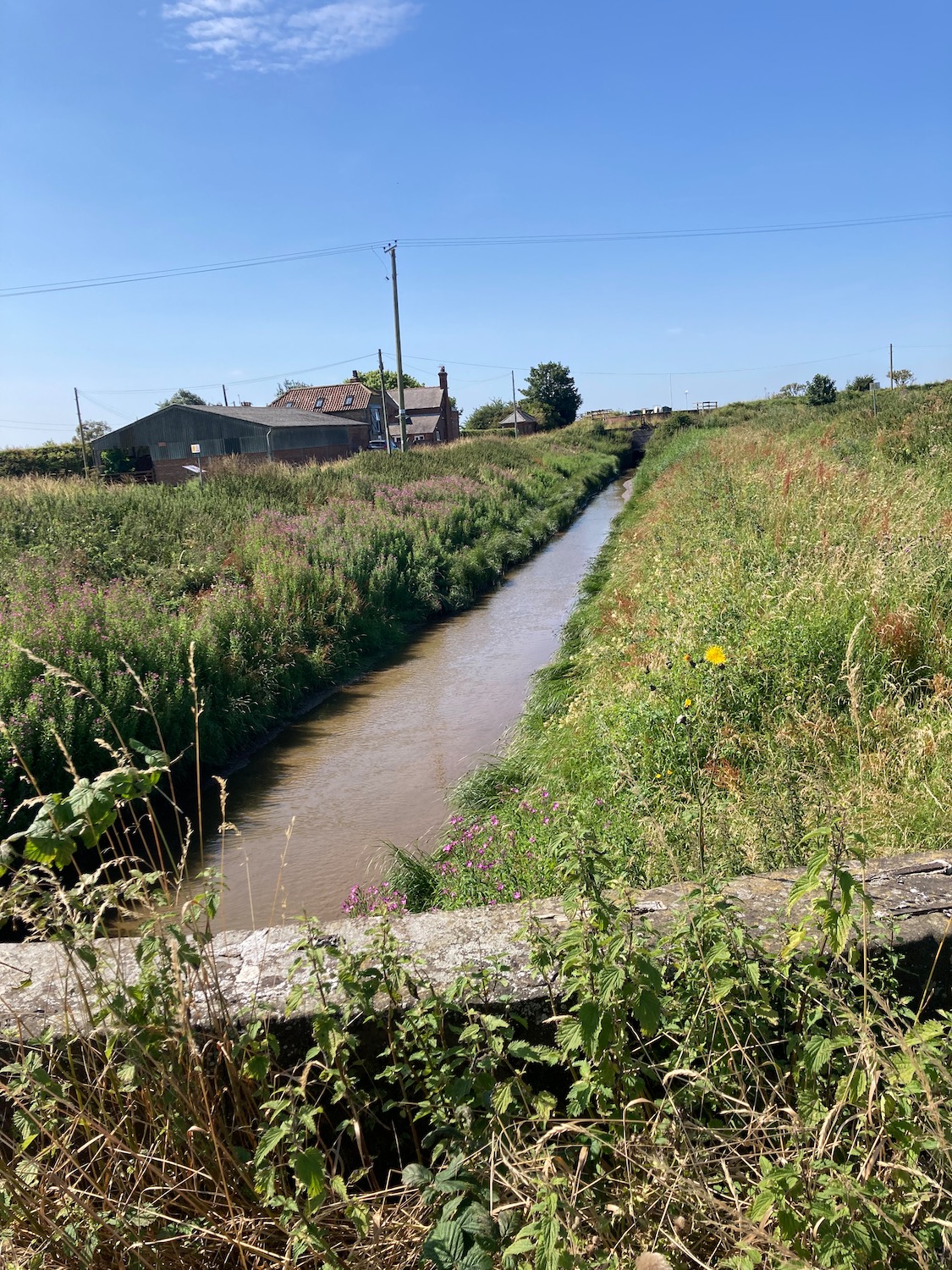 The path takes us over the drain – several small boats are beached on the muddy banks.