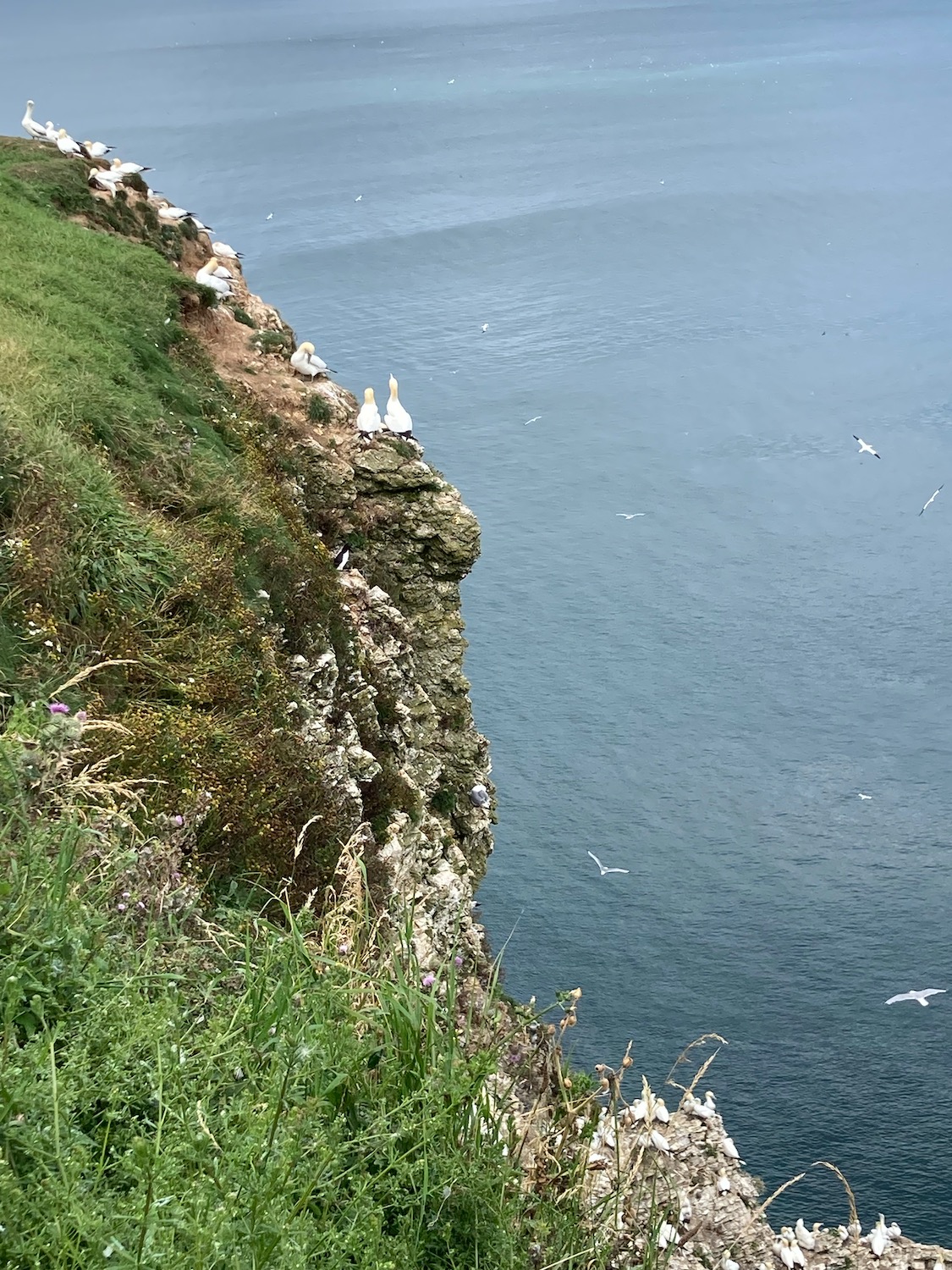 It turns out this is part of a seabird research project by the RSPB to study the productivity of Razorbills, Guillemots, Kittiwakes and Gannets. Well, from the racket I’d say these hundreds of birds, ducking and diving around nests on the cliff face, are very productive indeed. It takes me right back to the Grand Hotel only here it’s very much in keeping with the surroundings.