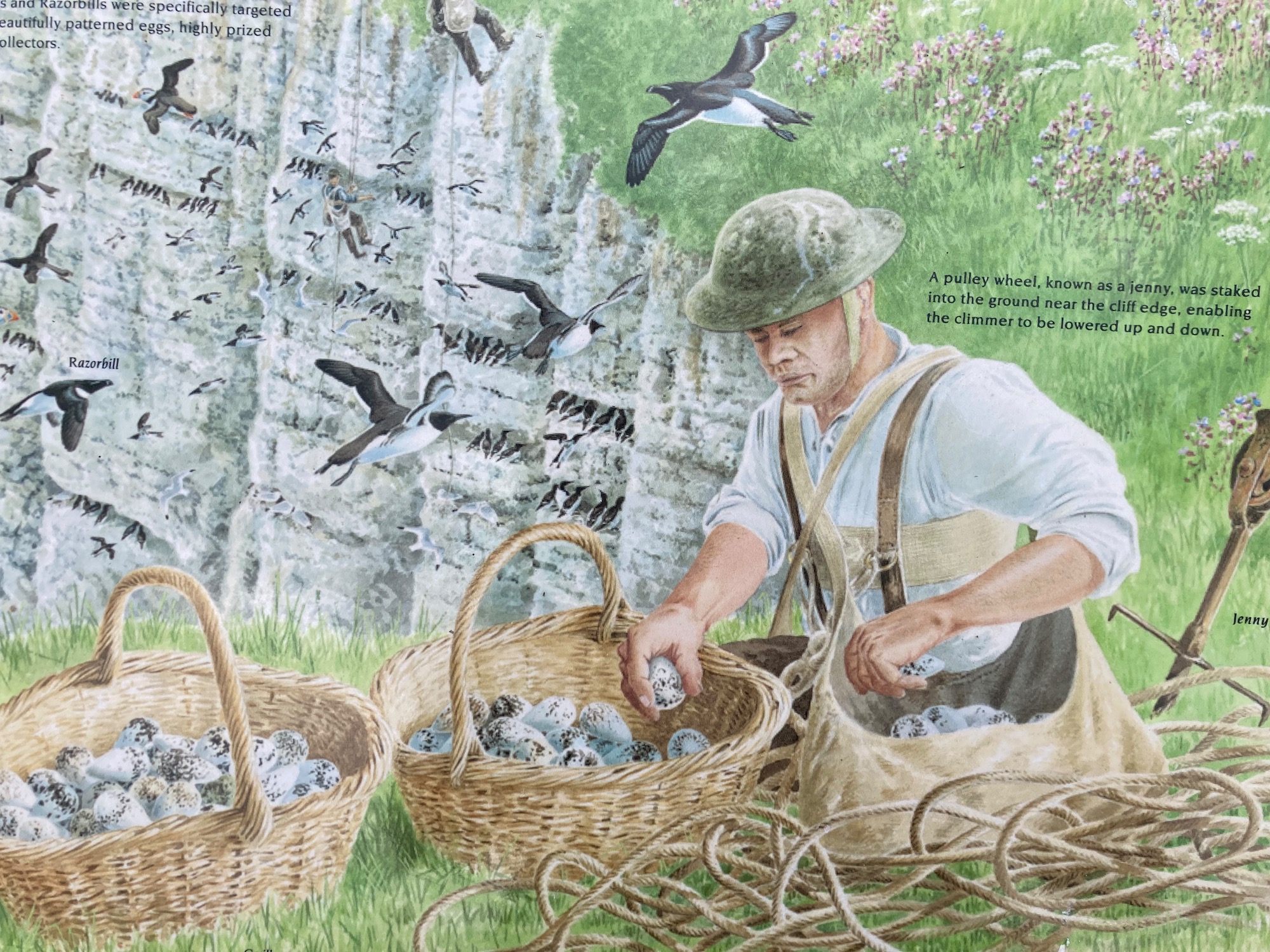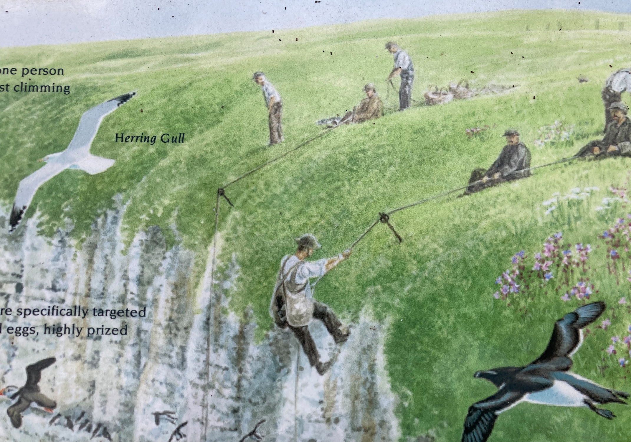 It brings to mind the St Kildans, the ‘bird people’ who also abseiled cliffs (and climbed up sea stacks) to collect gannet and fulmar eggs, or in their case, also to capture fulmars to eat and milk their oil. Sadly, the St Kildans could not sustain their way of life and asked to be evacuated by the British Government who agreed and they abandoned the island in 1930. This is the official story – I think the jury is still out as to whether they went willingly or were forced to leave.