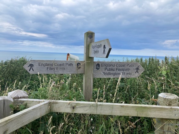 We have reached Bempton Cliffs, which unbeknown to us is the site of one of the UK’s top wildlife spectacles. All along the cliff top viewing galleries have been built and there are quite a few people about, some shouldering cameras with impressive zoom lenses. I later find out there is a visitor centre a short distance inland with road access.