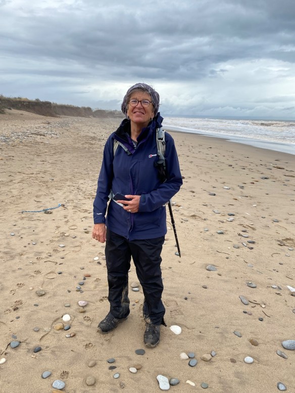 At one point we stop to chat to a local dog walker who assures us that there is easy access to the beach after the next farm we can see ahead – we’ll see.