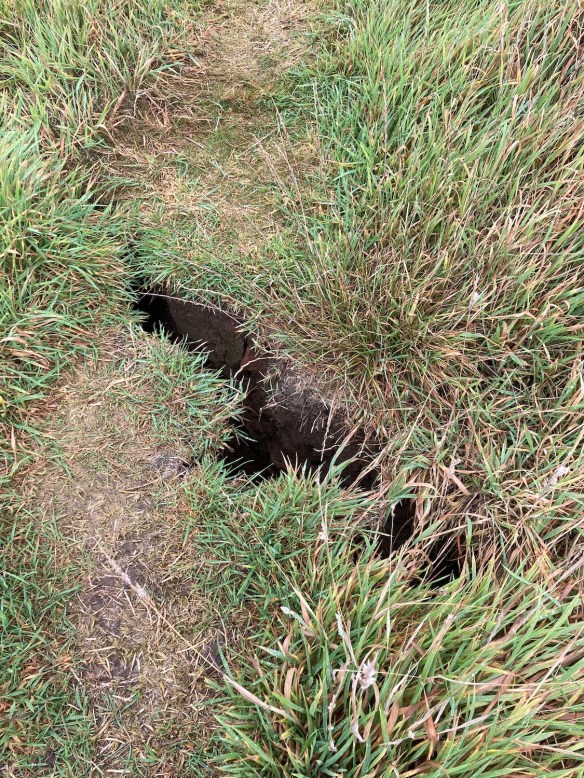 Deep cracks in the soil do not inspire confidence – I always wonder when exactly the cliff falls happen – does one get a warning? A low rumble maybe? Or am i thinking of an earthquake?